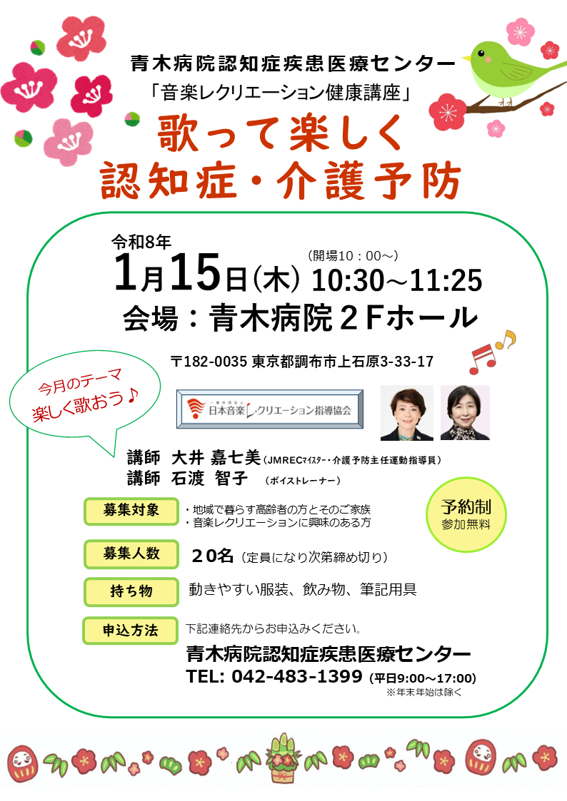 青木病院では、平成27年9月に東京都より「地域連携型認知症疾患医療センター」の指定を受け運営を開始しております。
