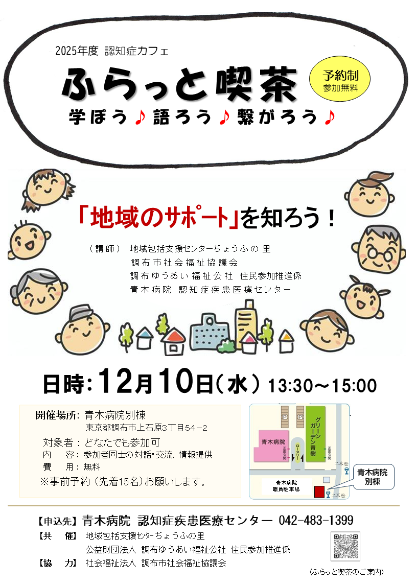 TOP >  当院からのお知らせ >  【12月10日】認知症カフェ(ふらっと喫茶)開催